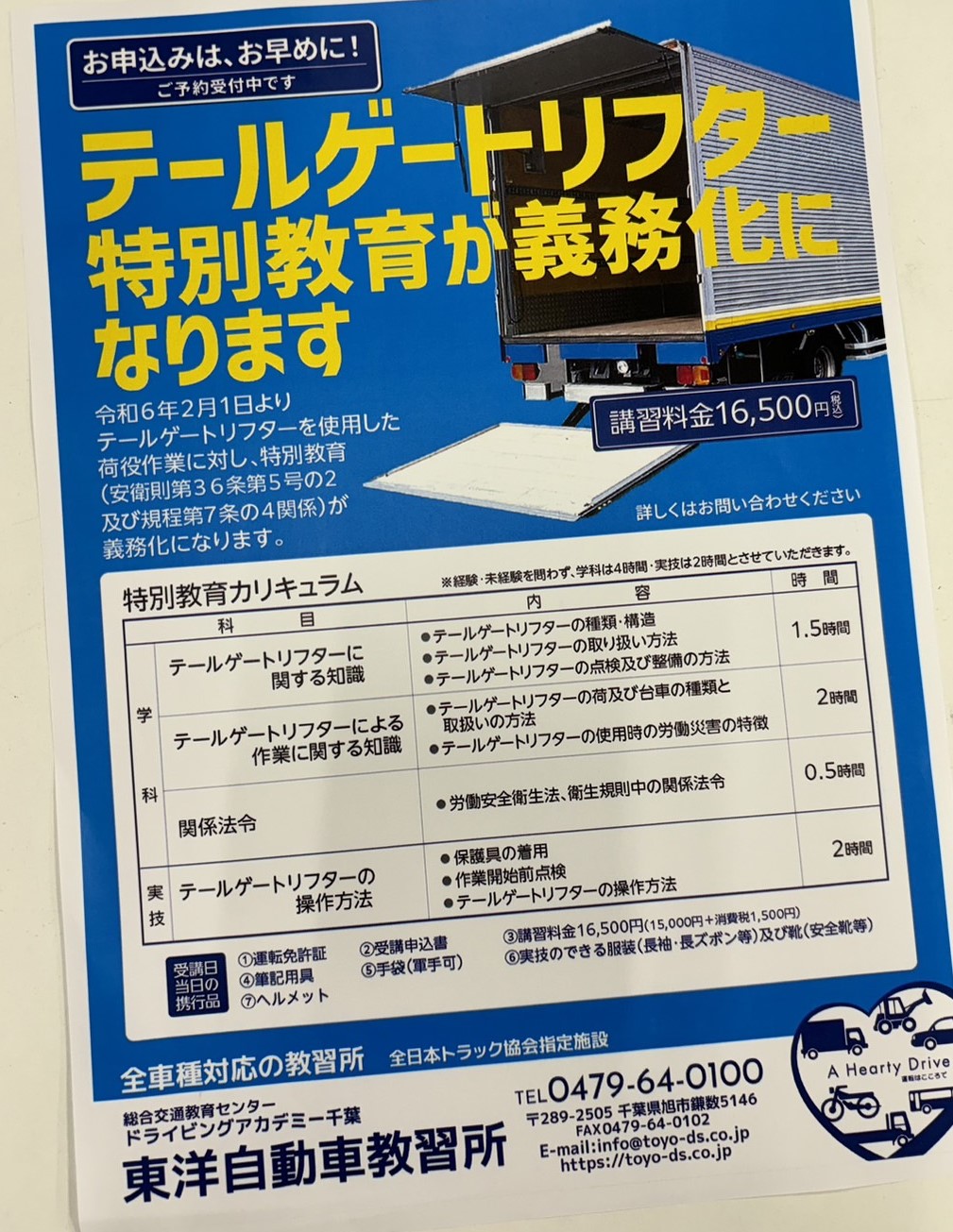 『テールゲートリフター特別教育』2月、3月も開催!